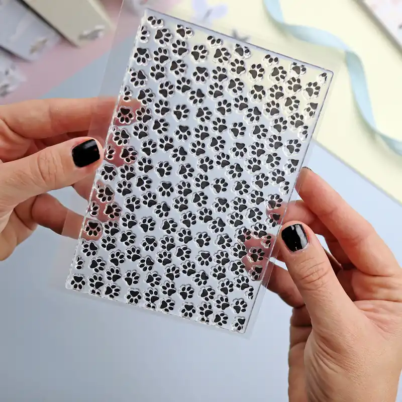 Este sello fondo Huellas Pelele pertenece a mi colección especial para proyectos infantiles, de Carnaval y Halloween. Es un patrón de huellas animales, diseñado para decorar grandes espacios de papel. Por eso mide 15×10 cm