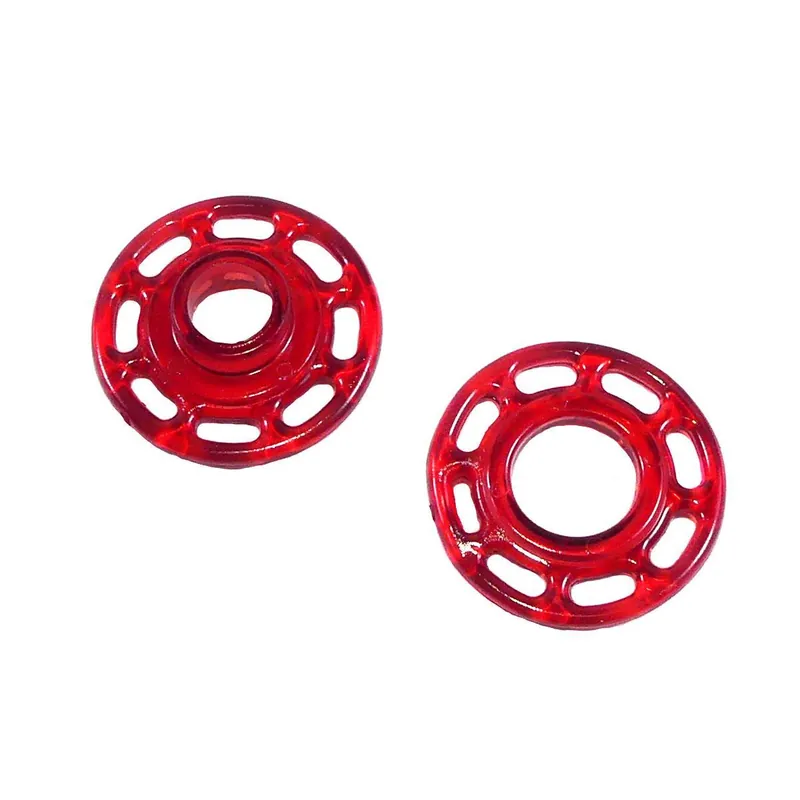 Originales broches de presión para coser en colores transparentes. Muy resistentes y fáciles de colocar, aguantando perfectamente cualquier tratamiento de la prenda.