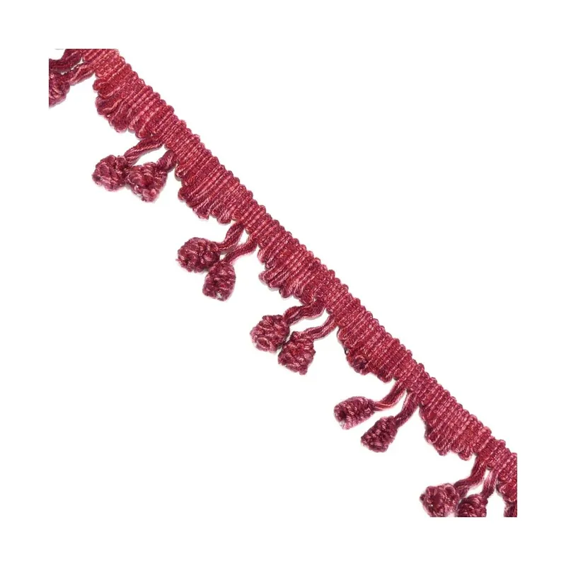 Gracias a este original fleco de madroños en color granate que tiene similitud con unas moras podrás decorar tu hogar o cualquier accesorio dándole un toque único.