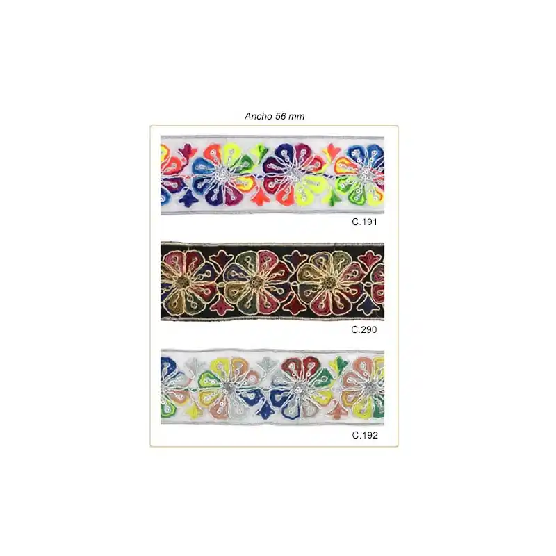 Galon bordado lentejuelas ancho 56mm (Metros)