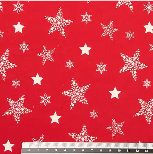 Tela de algodón de fondo rojo con estrellas de distintos estampados en color blanco