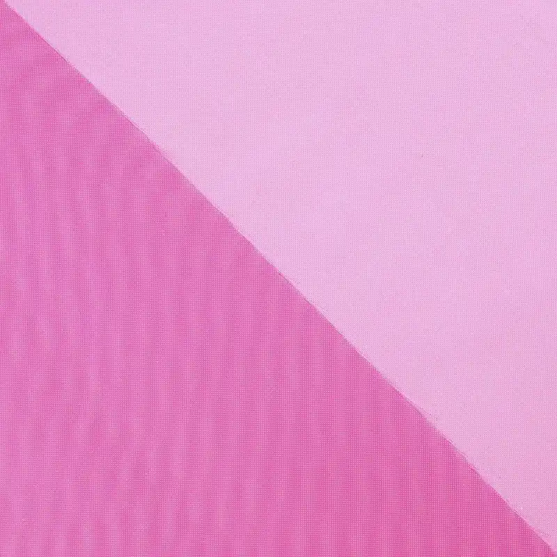 Tela organdí de poliéster en color fucsia. El organdí es un tejido, tieso, semirrígido y translúcido que se utilizada en los trajes de flamenco para dar dar volumen y crear estructura al vestido. También es utilizado para complementos como tocados.