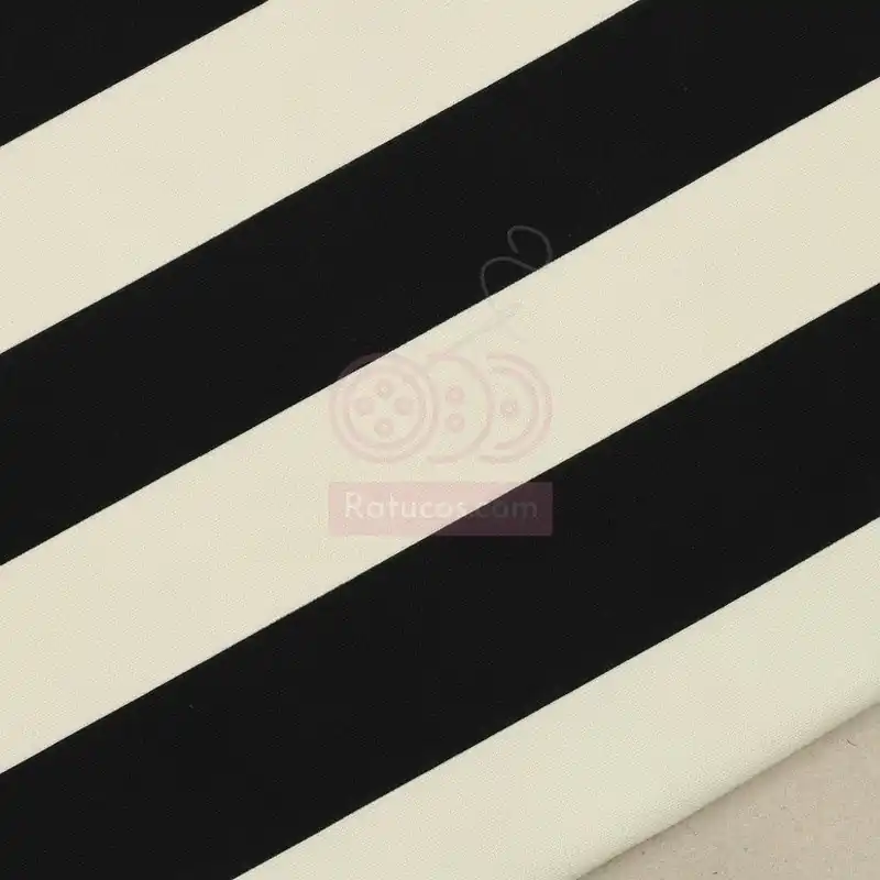Tela canvas (tipo loneta) con estampado de rayas horizontales.
