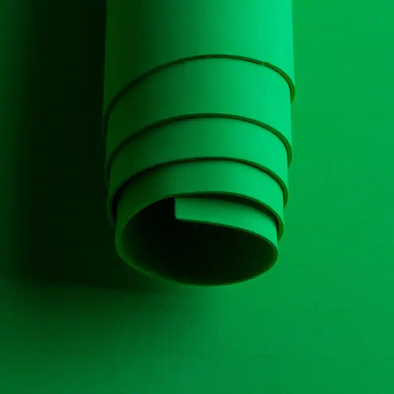 Goma eva de color verde para manualidades. La goma eva o foamy nos ofrece un gran abanico de posibilidades a la hora de hacer manualidades. Es un material termoplástico al que podemos aplicar calor y deformar a nuestro gusto y necesidad. Es idóneo para recortar y diferentes técnicas de pintura. Además, es un material perfecto para que los niños practiquen su creatividad, ya que al no tener cortes cortantes y ser blando se trata de un material seguro para los más pequeños.