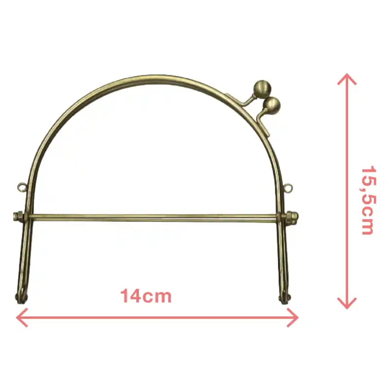 Boquilla metálica redonda de 14 cm con cierre de bolas dobles, ideal para la confección de bolsos de mano, clutch o carteras medianas.