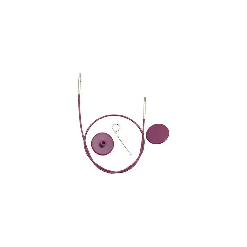Cable de color para agujas intercambiables de KnitPro. Son unos cables para tejer con agujas circulares de 60cm (con las agujas). Esta técnica te permite trabajar tus labores sin costuras, tejer en círculo proyectos como cuellos, mangas, etc. y trabajar labores de gran tamaño como mantas, chaquetones o ponchos, sin ejercer el peso sobre tus brazos. Estos cables intercambiables están fabricados en un plástico flexible. Sus extremos son metálicos y se unen a las puntas de aguja mediante rosca con una unión suave y súper resistente. Debes enroscar suavemente y apretar sin esfuerzo con la llave. La perfecta unión del cable a la aguja permite que puedas trabajar todas tus puntadas sin miedo a enganches. IMPORTANTE: La medida total se consigue incluyendo las agujas.