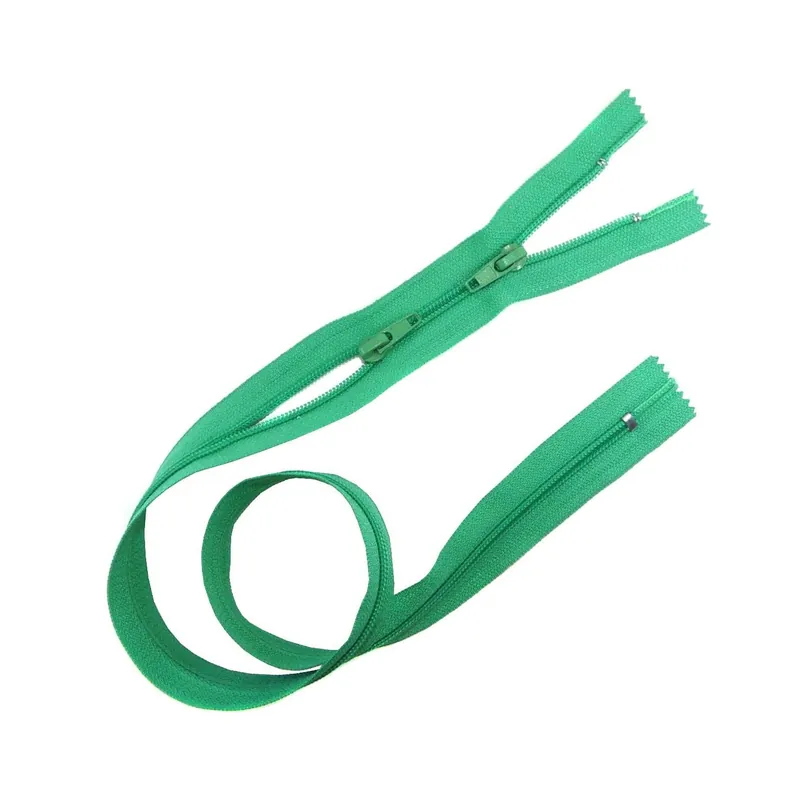 Cremallera especial para trajes de trabajo de talleres con el diente plástico en espiral y doble cursor.