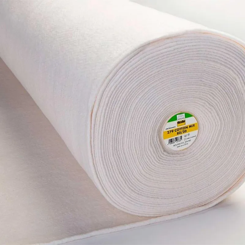 Guata punzonada compuesta de algodón (80 %) y poliéster (20 %). Aunque es muy ligera y suave, proporciona un soporte y una estabilidad considerables. Desarrollada especialmente para quilts, resulta también muy adecuada para el acolchado de chaquetas ligeras. Para todos los tejidos: tacto suave, ligero, gran estabilidad. Para garantizar la alta calidad y la durabilidad del producto, recomendamos una distancia máxima de acolchado de 20 cm. 279 Cotton Mix 80/20 es un producto natural que requiere cuidados específicos. Mide 244cm de ancho. Para evitar encogimientos, recomendamos dejar la guata a remojo en agua caliente antes de utilizarla. No retorcer mientras está húmeda, sólo apretar ligeramente y dejar secar sobre una superficie plana. Lavado a máquina 30° programa antiarrugas. Limpieza en seco. Precio por metro.