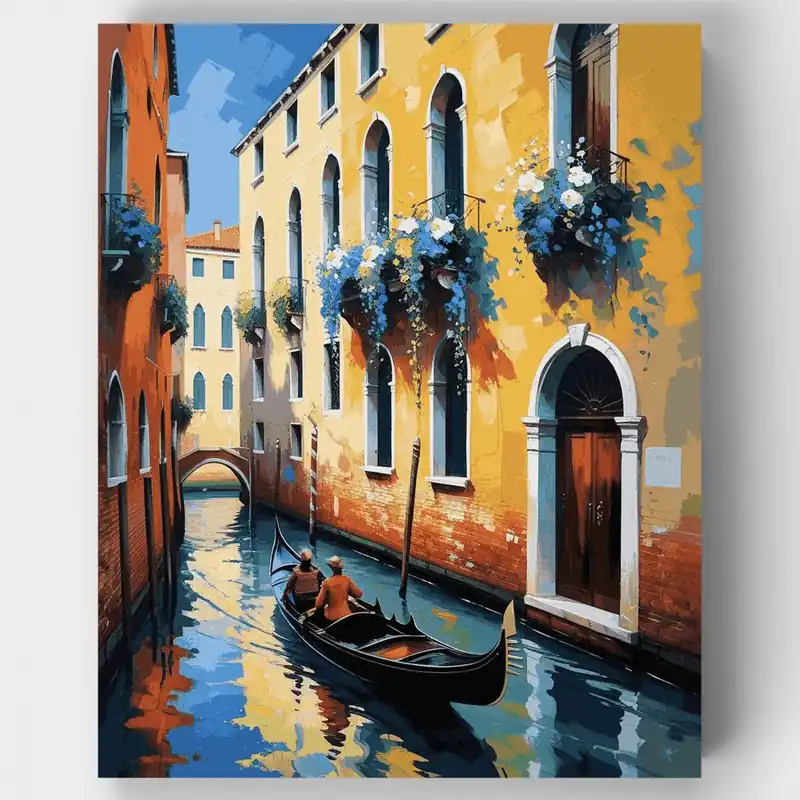 Transforma tu espacio con este encantador kit Pintar por Números \\\\»Canal Veneciano con Góndola\\\\». Esta impresionante obra de arte captura la belleza atemporal de Venecia con sus vibrantes edificios amarillos y naranjas adornados con cascadas de flores azules y blancas. La escena muestra un tranquilo canal con una góndola tradicional deslizándose por las aguas reflectantes, mostrando perfectamente la esencia romántica de esta icónica ciudad italiana.¿A quién le encantará?Este kit es perfecto para entusiastas de los viajes, amantes de Italia y cualquier persona que aprecie la arquitectura y paisajes mediterráneos. Ya seas principiante buscando desarrollar tus habilidades de pintura o un artista experimentado en busca de una salida creativa relajante, esta escena veneciana ofrece el equilibrio perfecto entre desafío y disfrute. ¡Trae la magia de Venecia a tu hogar hoy mismo!