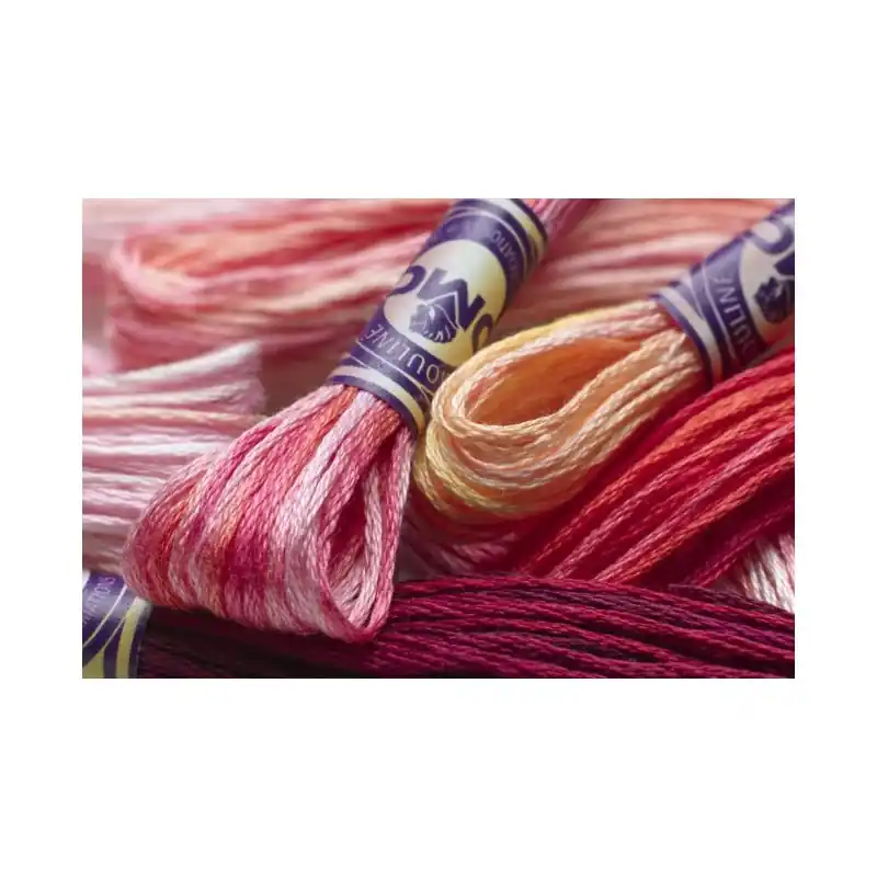 Hilo Mouliné Variation DMC, madeja de 8 metros, 6 hebras, grosor 5, disponible en 36 colores matizados. Ofrece una paleta de colores en un solo hilo, aportando vida a los bordados mediante sutiles variaciones de tonalidad.
