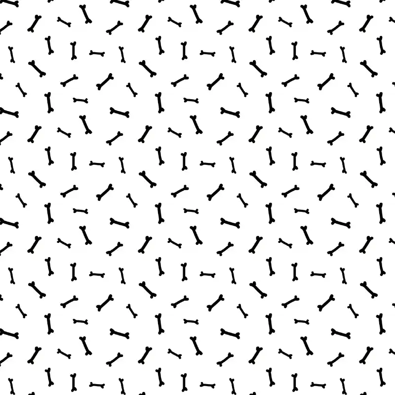 Tela de algodón de fondo blanco con estampado de huesos en color negro