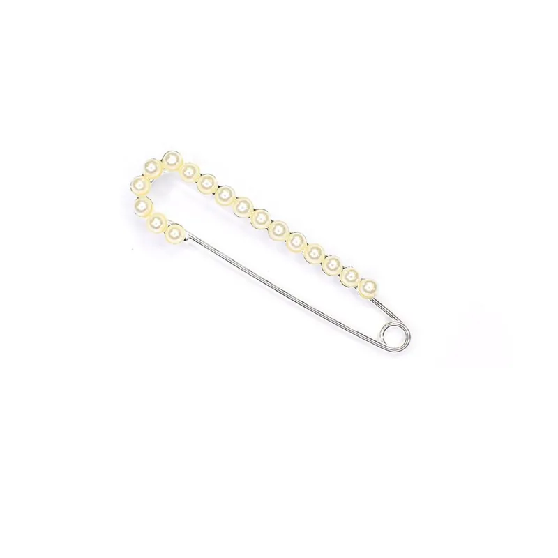 Su diseño incorpora una estructura metálica resistente que garantiza una sujeción firme y segura, permitiendo fijarlo fácilmente sobre chaquetas, bufandas, mantones, abrigos o fulares. Las perlas decorativas alineadas a lo largo del cuerpo aportan un aire sofisticado, convirtiéndolo en un accesorio perfecto tanto para looks formales como para estilismos más casuales con un toque distinguido.