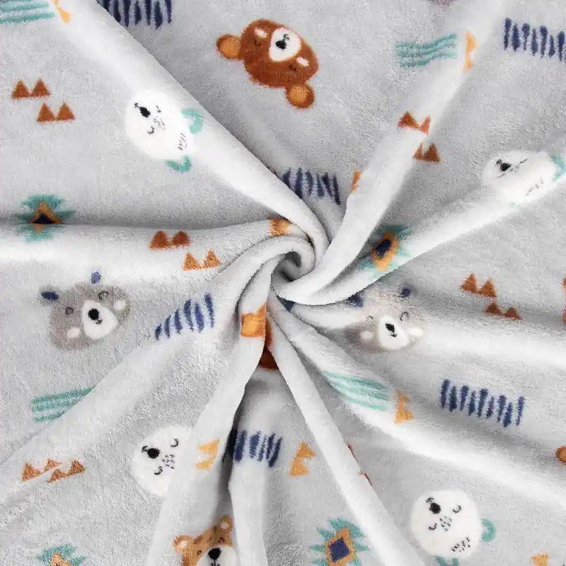 Descubre la calidez y ternura de nuestra coralina estampada “Ositos Tribus”, un tejido perfecto para confecciones infantiles y proyectos acogedores.