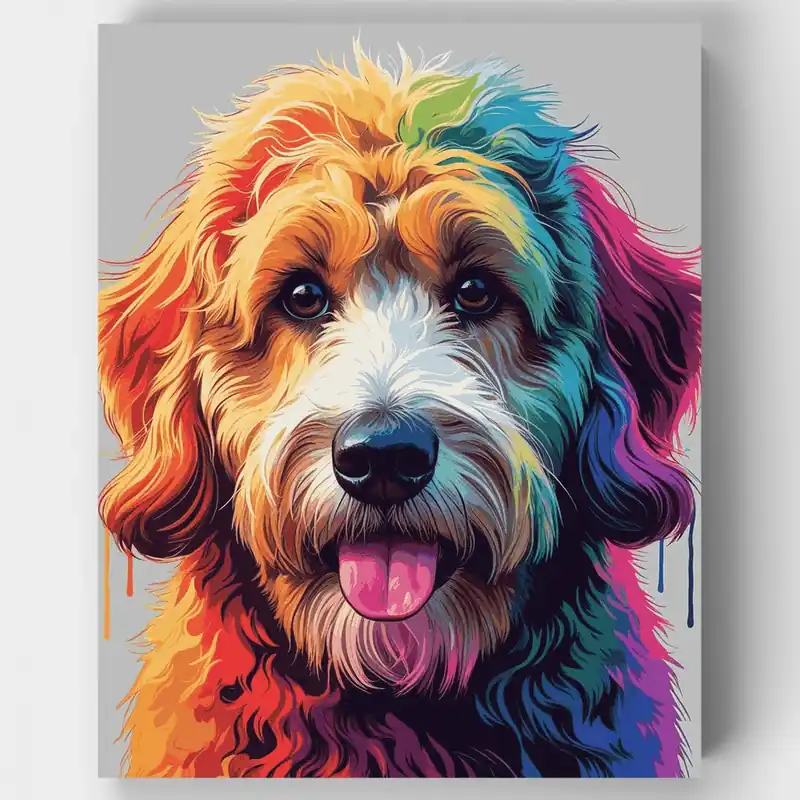Imprescindible (Must-Have) Rainbow Goldendoodle – Paint by Numbers Kit – Lienzo Enrollado / 24 Colores