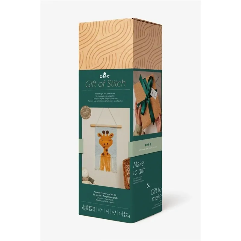 Un regalo realmente simpático para adornar cualquier habitación de bebé. Teje a ganchillo esta alegre jirafa que acompañará a los más pequeños. Incluye cinta y etiqueta de regalo. Reutiliza la caja como envoltorio. Esta simpática jirafa para colgar en la pared será un bonito regalo hecho a mano con mucho cariño para un bebé, un niño o una futura mamá. Tejida a ganchillo con hilo de algodón amarillo brillante y un fondo neutro, la simpática cara de esta jirafa llenará de alegría la habitación de los más pequeños. El kit incluye todo lo que necesitas para empezar, incluidas las instrucciones paso a paso y gráficos de ganchillo claros. Desarrollado como parte de nuestra gama Gift of Stitch. Puedes hacer el kit tú misma y regalar el colgante de pared terminado como un regalo hecho a mano con mucho cariño, o puedes regalar el kit para que lo teja un entusiasta del crochet. Así, tu ser querido podrá descubrir la relajación y la alegría de hacer. Incluso se incluye una etiqueta de regalo que puede bordarse. Contenido del kit: 3 x 50 g ovillos- 100% algodón. 2 x 2 m madejas Mouliné Spécial® – 100% algodónn. 1 x 3 mm ganchillo. 1 x aguja de bordado. 1 x instrucciones (EN / FR / SP / DE / IT). 1 x lazo. 1 x etiqueta de regalo. Para completar este proyecto utilizarás los siguientes puntos de bordado: Punto enano. Cadeneta. Punto bajo. Punto bajo en la parte trasera del punto. Aumento. Anillo mágico. Cabeza de alondra (macramé). Añadir un nuevo ovillo / cambiar de color. Punto bajo en la parte trasera del punto. Rematar escondiendo las hebras. Cerrar. ± 20 × 33 cm. Instrucciones incluidas.