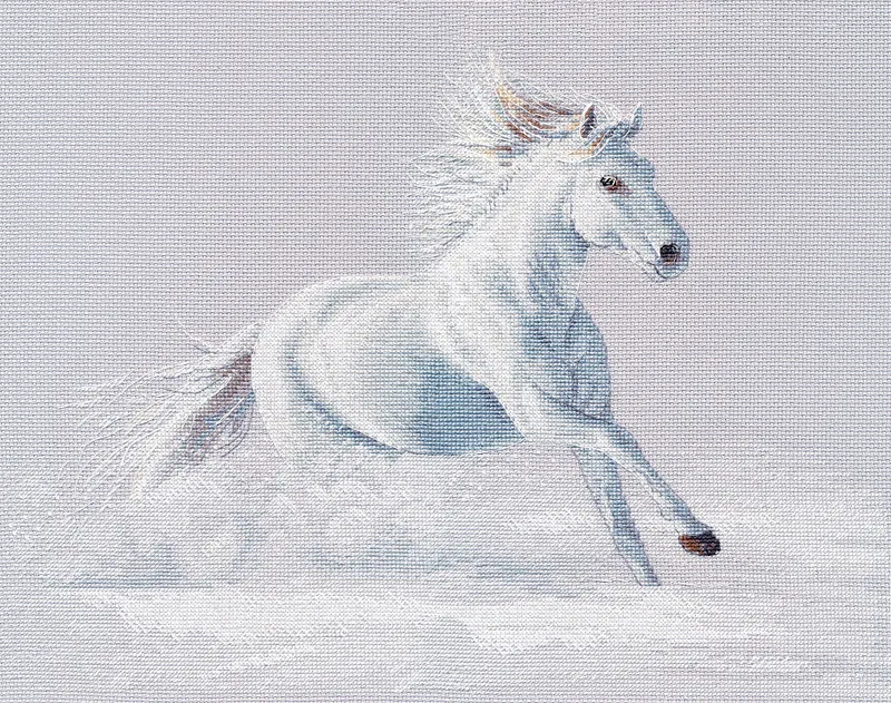 Un majestuoso caballo blanco galopa sobre la nieve, símbolo de fuerza, libertad y elegancia pura. Este diseño transmite serenidad y movimiento, siendo ideal para quienes aman la naturaleza y los animales nobles.