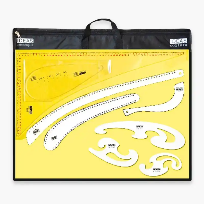 Completo kit de reglas de patronaje de la marca Ideas, con herramientas precisas para diseñar, medir y crear patrones con profesionalidad y estilo.