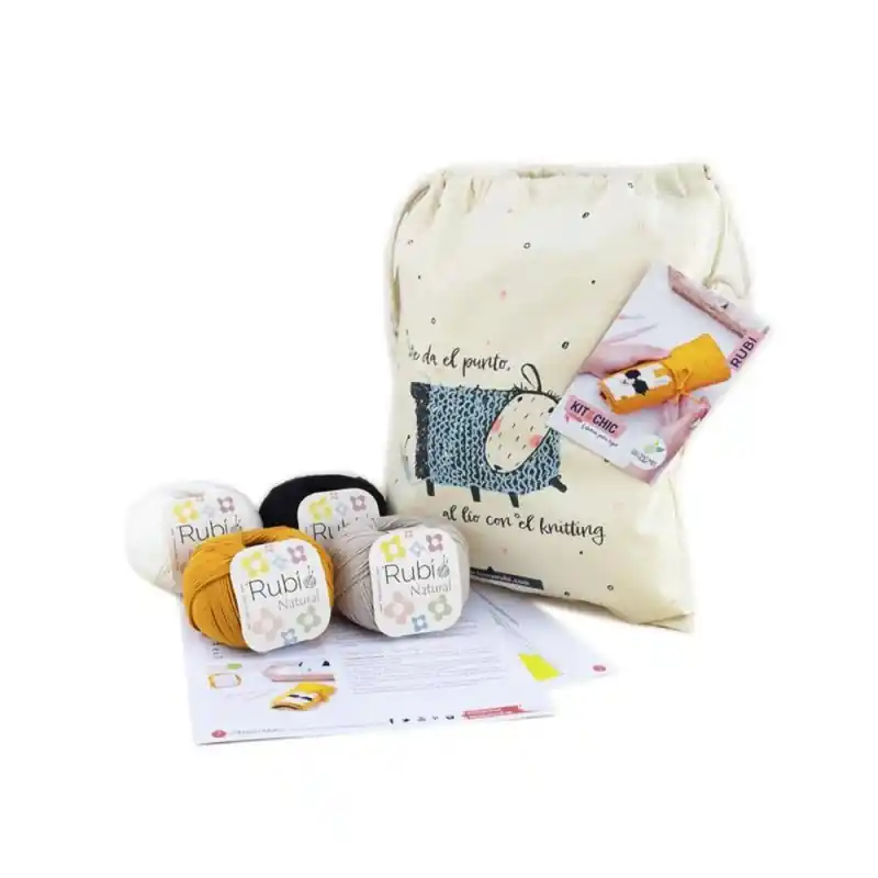 Kit para guarda agujas All in one de Gallimelmas. Todo lo necesario para la confección de tu propio guarda agujas. Incluye: 4 ovillos Rubí Natural+Instrucciones explicadas paso a paso+Bolsa orgánica pequeña