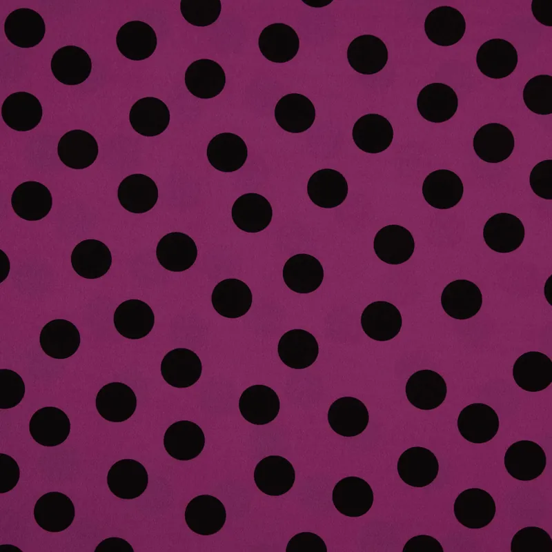 La tela Koshibo de lunares 33mm fondo efecto delavé buganvilla y lunares negros es una opción ideal para confeccionar prendas de moda con caída, comodidad y estilo. Se trata de un tejido de poliéster liso, fino y con tacto suave, muy apreciado por su fluidez y resistencia, perfecto para climas cálidos y diseños femeninos. Con un gramaje de 130 g/m² y ancho de 150 cm, el Koshibo es fácil de trabajar y ofrece un excelente rendimiento en proyectos de confección. Su textura ligeramente granulada aporta un acabado delicado, mientras que su composición 100% poliéster garantiza durabilidad, fácil planchado y bajo mantenimiento. Ideal para blusas, faldas, vestidos amplios, pantalones fluidos y camisones, es un básico imprescindible para cualquier armario.