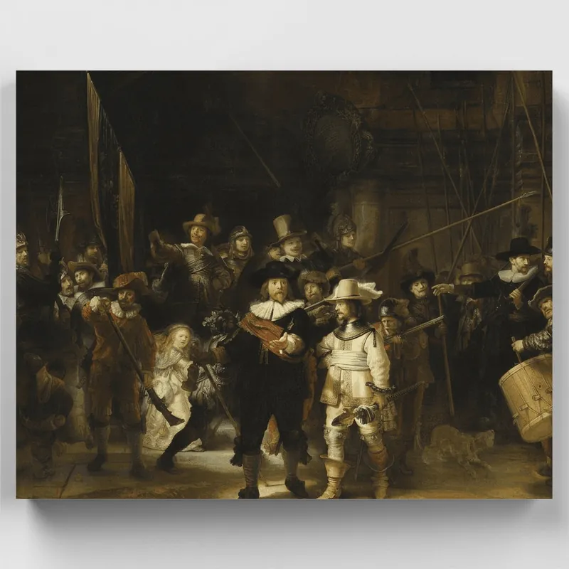 Recrea una de las obras maestras más célebres de la historia con este exquisito kit de pintar por números que presenta la icónica \\\\»La ronda de noche\\\\» de Rembrandt. Este impresionante retrato grupal del siglo XVII captura la energía dramática de los guardias cívicos de Ámsterdam con magnífico detalle, desde el juego de luces y sombras hasta los intrincados trajes de época y la parafernalia militar. Cada pincelada te acerca más a comprender el genio de Rembrandt mientras pintas las figuras centrales emergiendo de la oscuridad, la joven niña bañada en luz dorada y la composición dinámica que revolucionó el retrato grupal para siempre. ¿A quién le encantará? Este kit es perfecto para entusiastas de la historia del arte, admiradores de Rembrandt y cualquiera que busque un desafío creativo significativo. Ya seas principiante buscando desarrollar habilidades de pintura o un aficionado experimentado atraído por el arte clásico, este proyecto ofrece un viaje inmersivo en la pintura de la Edad de Oro holandesa. También es un regalo excepcional para amantes de los museos y entusiastas de la cultura que aprecian las obras maestras atemporales. Lleva a casa esta legendaria obra de arte y experimenta la alegría de crear tu propio tesoro renacentista.