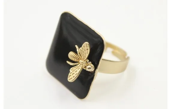 Liquidación Anillo cuadrado esmaltado negro con abeja oro mate. Es regulable.