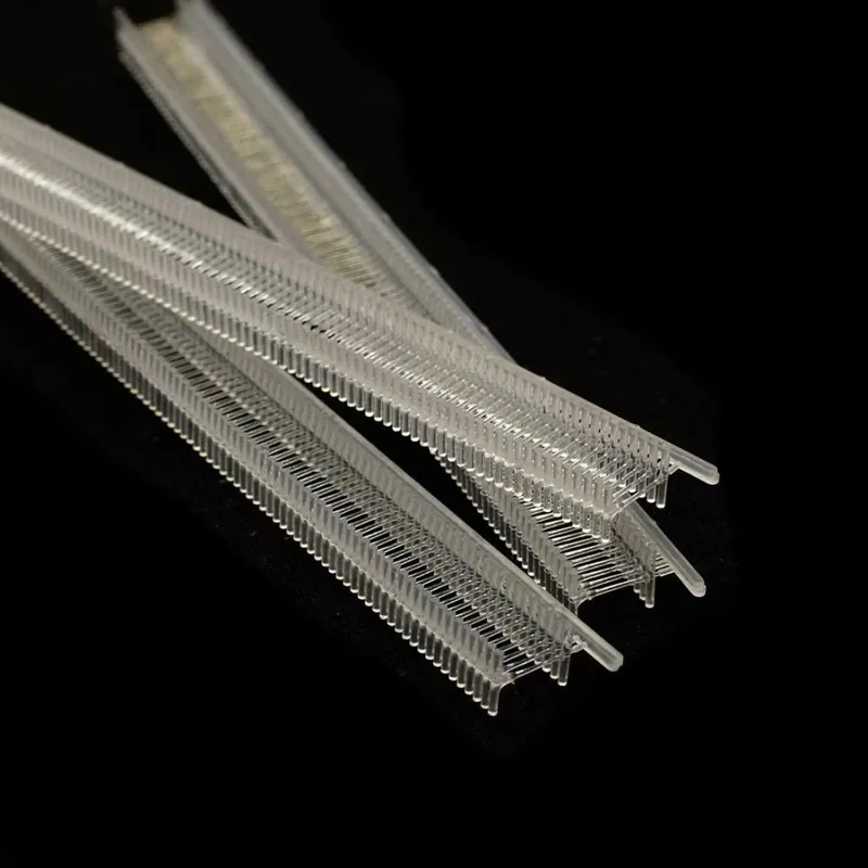 Grapas o enganches para pistola microstitch. Miden 8mm de largo y son perfectas para unir telas temporalmente o para etiquetar tu ropa. Ideal para todo tipo de proyectos de costura o patchwork. Puede utilizarse también en trabajos de vestuario en cine o televisión. Son grapas resistentes que permanecerán enganchadas a tu prenda hasta que lo necesites. El blíster contiene 500 grapas.