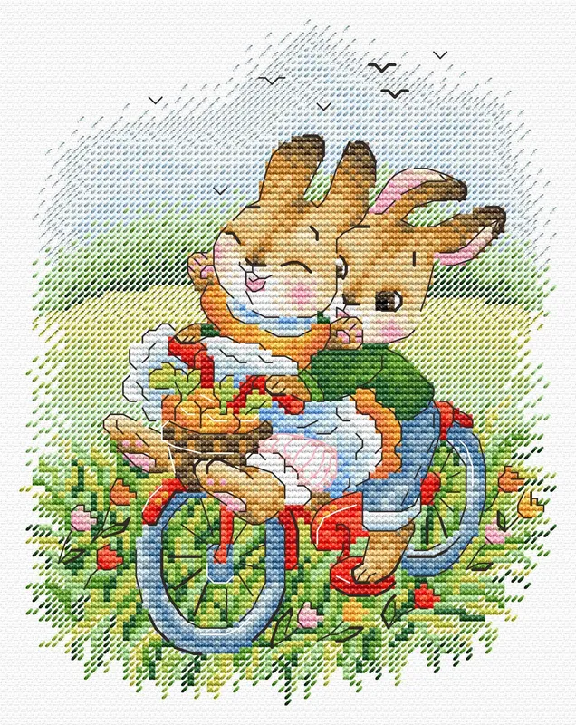 El kit de punto de cruz «With the Wind» de MP Studia presenta una encantadora escena de dos conejitos disfrutando de un paseo en bicicleta. Con colores vibrantes y un diseño alegre, esta obra captura la esencia de un día despreocupado en el campo.