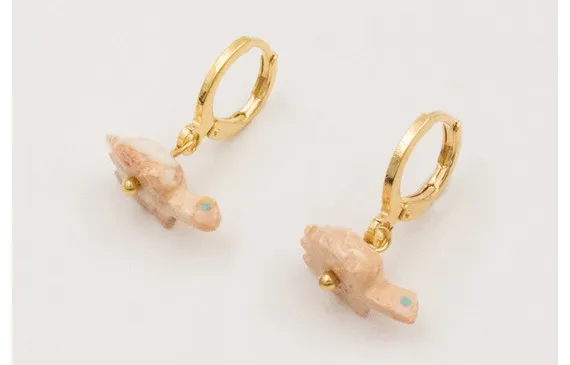 Lujoso Pendientes cierre de seguridad ORO18K-3micras con colgante tortuga, Largo 2cm.