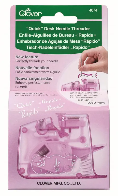 Enhebrador de Agujas de Mesa “Rápido” Clover 4074: La herramienta perfecta para enhebrar agujas de forma rápida y eficiente. Este modelo mejorado presenta un diseño y funciones optimizadas, facilitando el paso del hilo a través de la aguja.