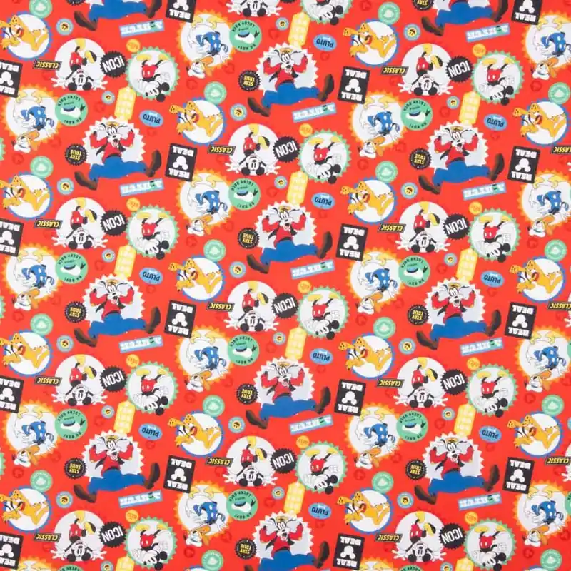 Tela de algodón grueso con estampado digital infantil de dibujos de Mickey Mouse. Popelín de algodón 100% estilo cretona.