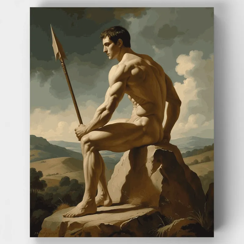Transforma tu visión artística en realidad con este cautivador Kit de pintar por números que presenta a un poderoso guerrero clásico. Esta impresionante pieza representa una figura musculosa sentada en un afloramiento rocoso, sosteniendo una lanza contra un fondo paisajístico dramático. El estilo neoclásico muestra proporciones heroicas y anatomía magistral, que recuerda las tradiciones escultóricas de la antigua Grecia y Roma. Cada sección numerada te guía a través de la creación de esta obra maestra atemporal con ricos tonos tierra y composición clásica.¿A Quién Le Encantará?Este kit es perfecto para entusiastas del arte que aprecian temas clásicos, aficionados a la historia fascinados por guerreros antiguos, y cualquiera que busque un proyecto de pintura sofisticado. Ya seas principiante buscando desarrollar tus habilidades o un pintor experimentado que quiere explorar el arte neoclásico, este kit ofrece un viaje creativo fascinante. Regálate a ti mismo o a un ser querido la oportunidad de crear arte de calidad museística desde la comodidad del hogar.