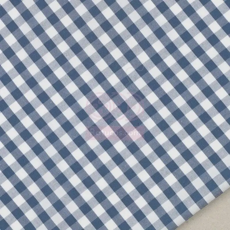 Tela de cuadro vichy de algodón, en color blanco combinado con azul empolvado.
