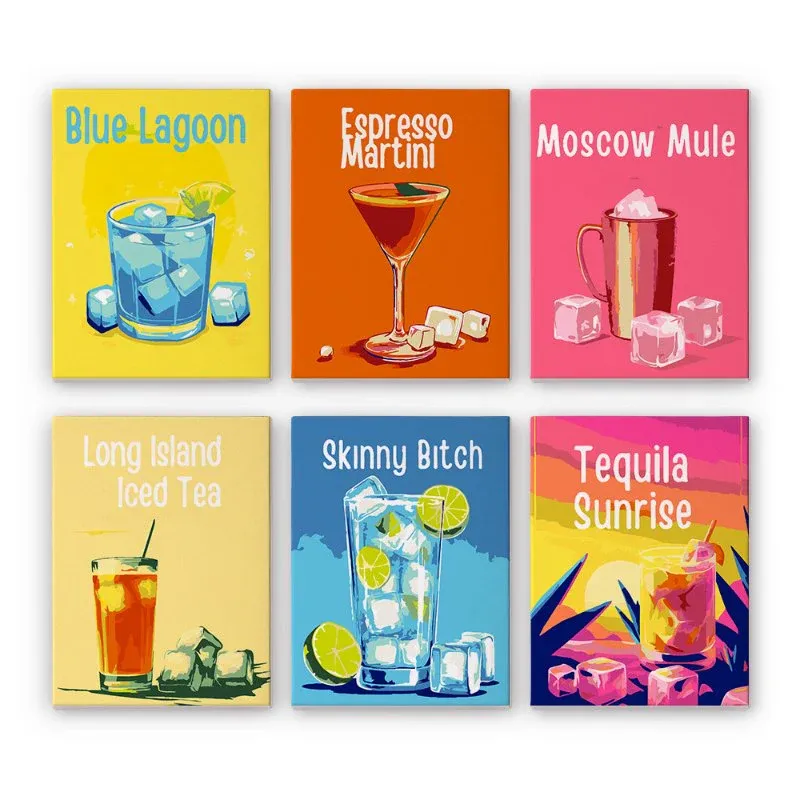 Mayoreo Pintura sobre números – 6 mini pinturas | Conjunto de cócteles de hora feliz