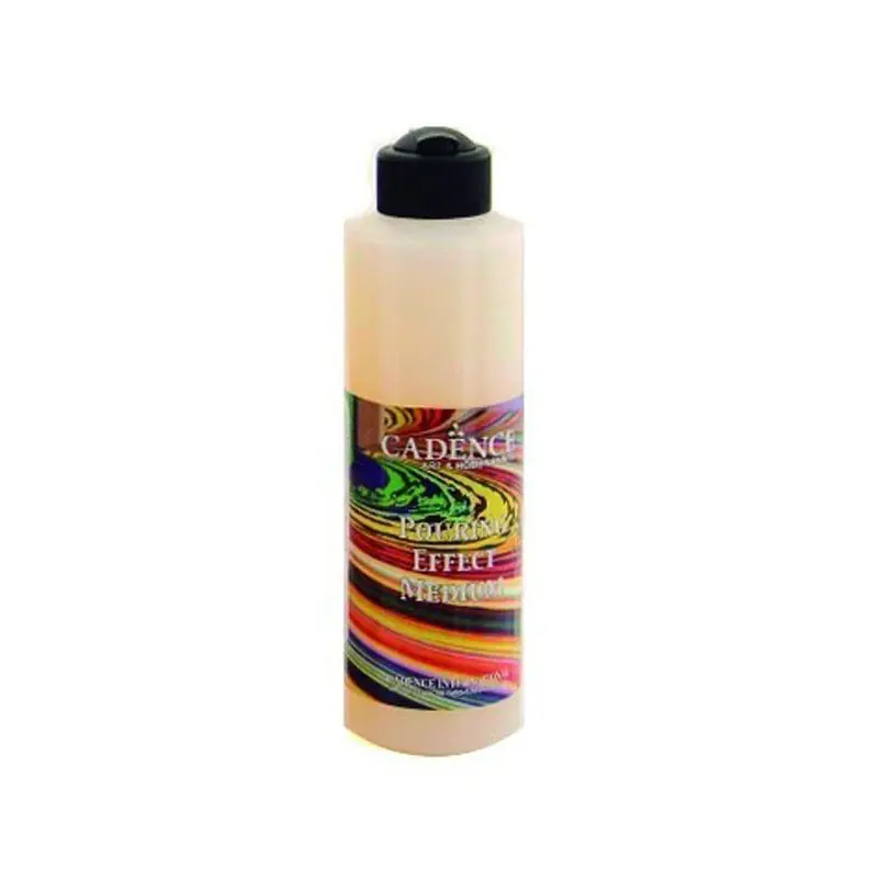 Medium Colada POURING CADENCE, 250 ml. Medium CADENCE Pouring Effect para mezclar con pinturas acrílicas y crear capas de vertido, charcos o efectos fluidos con marmoleados entre los colores sin producir grietas o retención de burbujas.