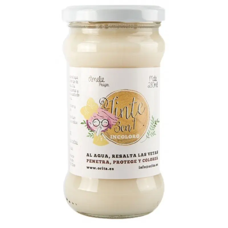 El TINTE 3en1 INCOLORO PRAGER ORITA 280 ML. Es un producto al agua para todo tipo de maderas, las protege y colorea resaltando las vetas.