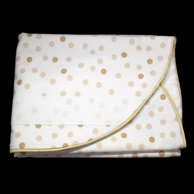Arrullo de bebés con pequeños topos en color marrón y color beige. Este arrullo para bebés recién nacidos es genial para dormir al bebé en brazos. Su textura es suave. Tiene un diseño vistoso y llamativo. En su cinta de panamá podrás bordar cualquier nombre, inicial o motivo infantil que te imagines. Composición: 60% Poliéster y 40% Algodón.