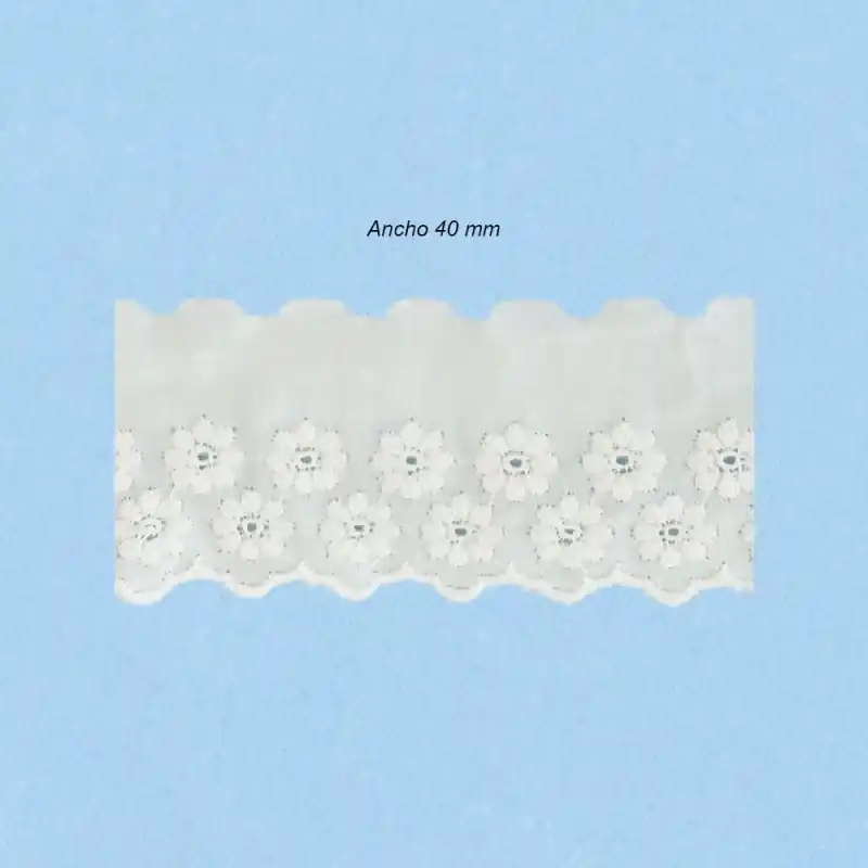 Bordado batista 100% Algodon Ancho 40mm. Fabricacion nacional gran calidad. (Metros)