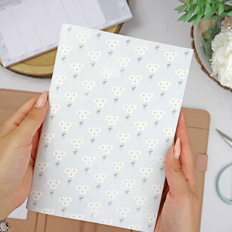 El Cuadernillo Bellis Perennis es una libreta de tamaño A5 (21×15 cm) diseñada especialmente para incluir dentro de una Lulidori, a la que se sujeta mediante un sistema de gomas elásticas.