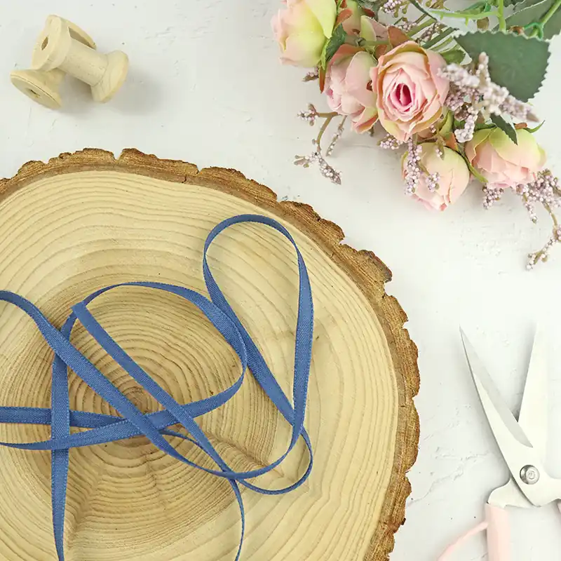 Este lazo FINO de lino Índigo es un lazo fuerte y tupido. Está elaborado en un textil que simula el lino, con acabado mate y tintado en este color.