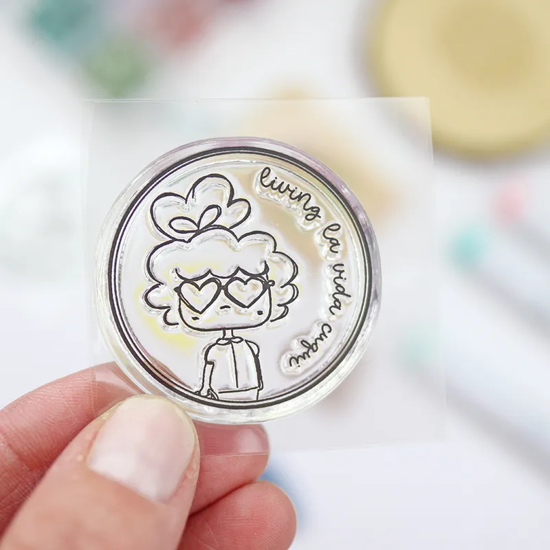 El mini sello medallón Lolita tiene un pequeño tamaño de 4 cm y es ideal para hacer tus propias etiquetas y acompañar tus trabajos creativos.