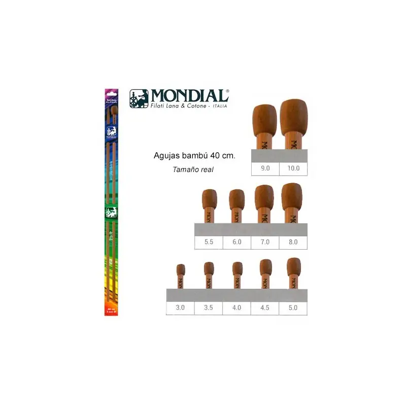 Aguja Tricotar Bambu de 40cm.Color Marron Oscuro. Presentacion blister 1 par con colgador.