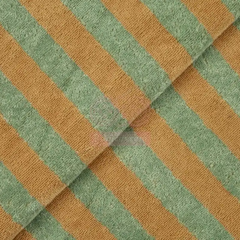Tela de felpa de rizo de toalla de bambú, y otras fibras, tejida con rayas verticales.