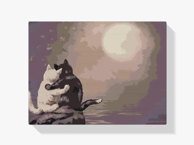 Moderno Pintura Diamante – Gatos en luna llena