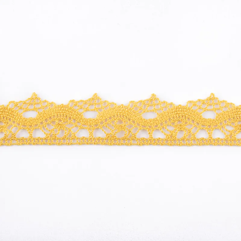 Tira de puntilla en color ocre. Tira de puntilla calada en forma de ondas de 3 cm de base de ancho en su zona más ancha y 2,3 cm en la menos ancha, toda del mismo color. Compra a partir de 1 metro, compra los metros de puntilla que necesites. Precio en oferta hasta agotar existencias.