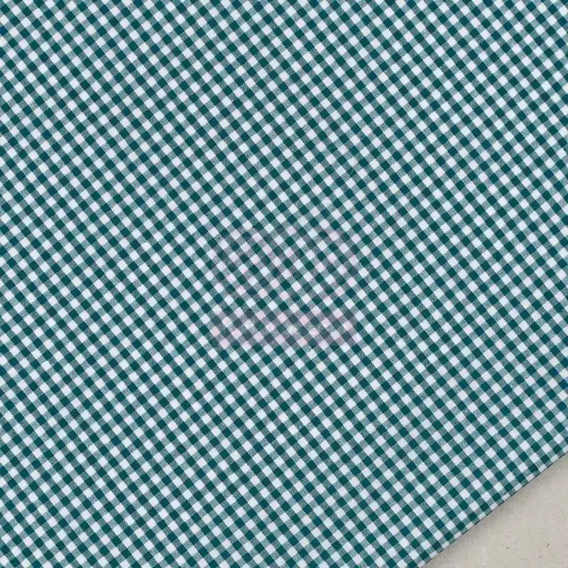 Tela de cuadro vichy de algodón, en color blanco combinado con petróleo.