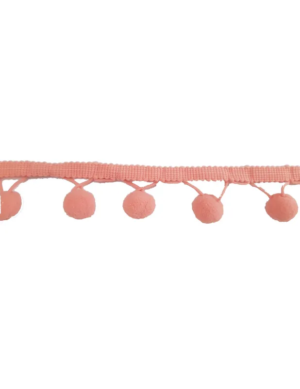 Pasamaneria por metros de madroños de polyester de color rosa. Medida del madroño 20mm apx.