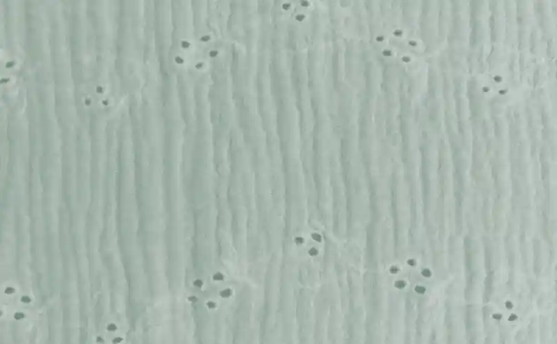 Muselina, bambula o doble gasa en color verde jade con pequeña flor bordada y perforada