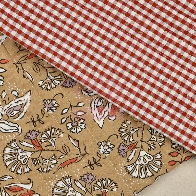 Tela acolchada con estampado floral y revés de cuadros vichy.