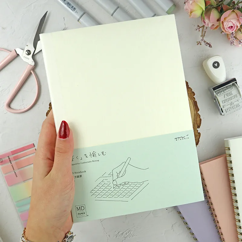 Cuaderno A5 Listas de Midori con páginas rayadas ahuesadas de MD Paper. Tanto si escribes como si dibujas necesitas un papel suave sobre el que se deslice tu lápiz, bolígrafo y pluma, pero que a la vez sea fuerte y que no suelte pelusa. Un papel gustosito sobre el que sea un placer escribir y dibujar, y que ayude a que fluya tu creatividad.