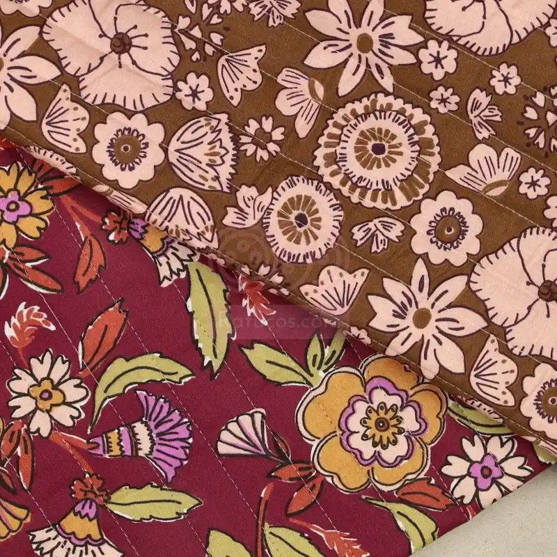 Tela acolchada con estampado floral por el derecho y revés de la tela.